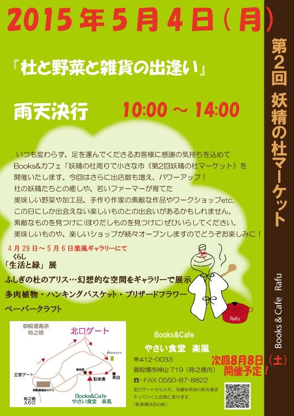 御殿場高原時の栖内、Books&カフェ内で行われる、『妖精の杜マーケット』にて、