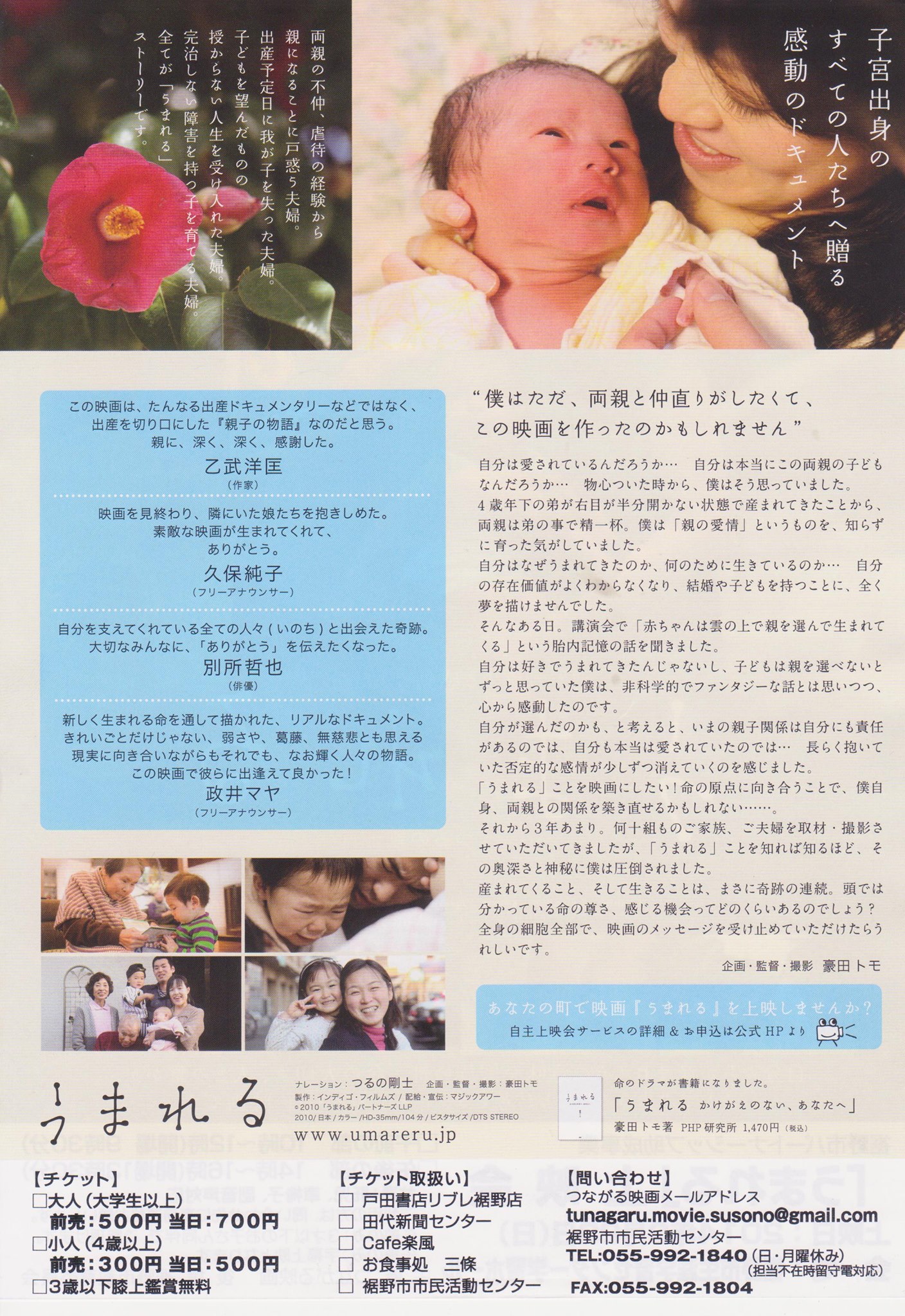 うまれる」上映会でチラシ配架でご協力頂いた、