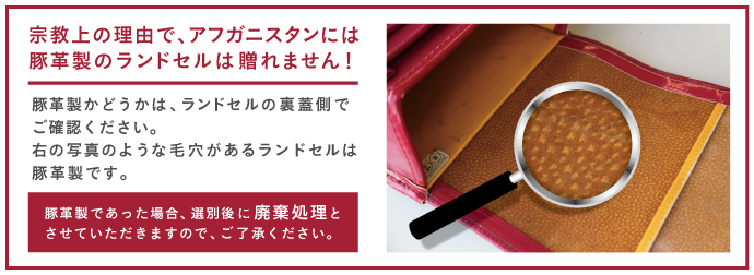 @寄贈するランドセルひとつにつき、海外輸送費1800円のご負担をおねがいします。