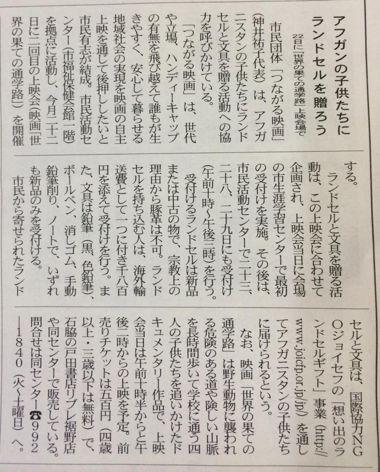 3/22(日) 上映会場にて ランドセル受付があります